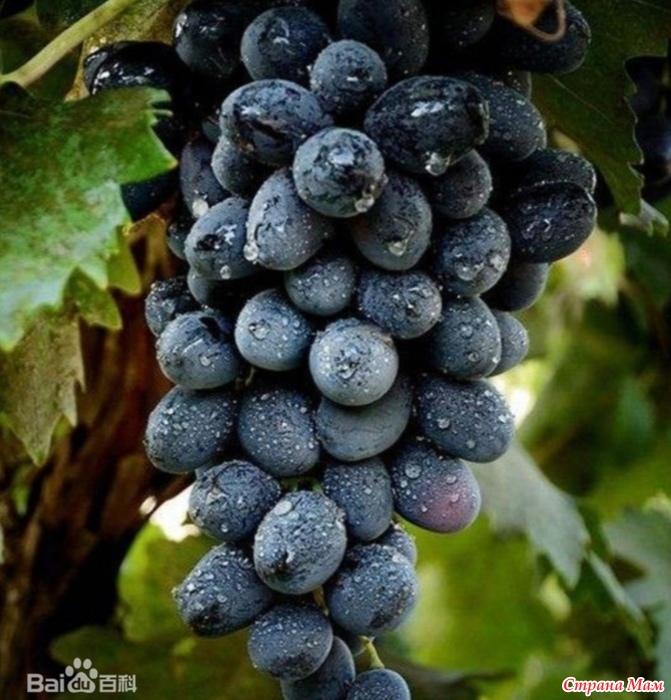 Крупный, сладкий с фиолетовой мякотью и липким соком. Предположительно сорт "Олимпия Блэк"