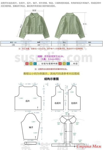 В этом руководстве в качестве примера используется маленький размер; для других размеров, пожалуйста, обратитесь к соответствующей выкройке.