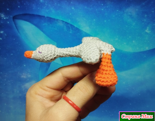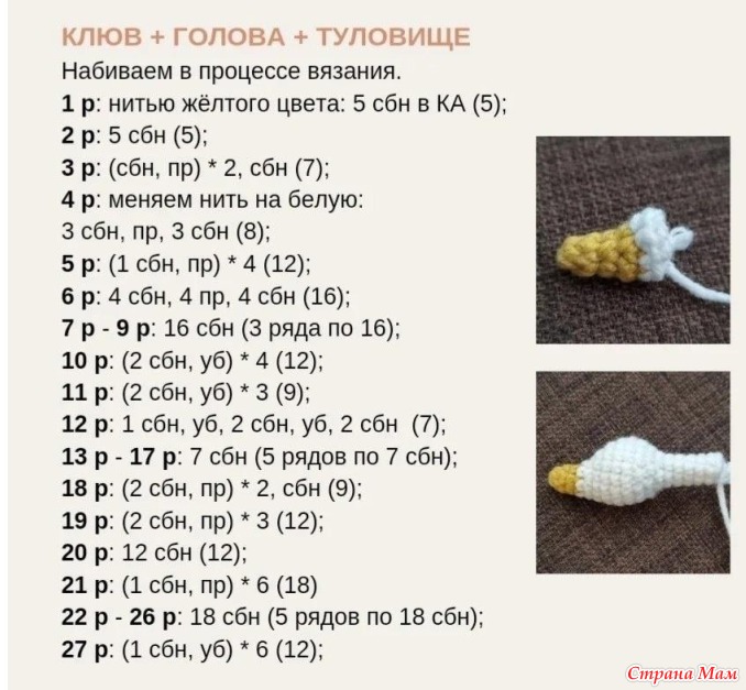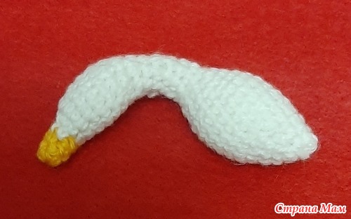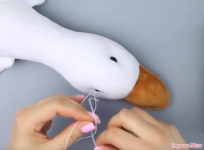 приметать и затем пришить части клювика к соответствующим деталям тела -нижнюю к нижней