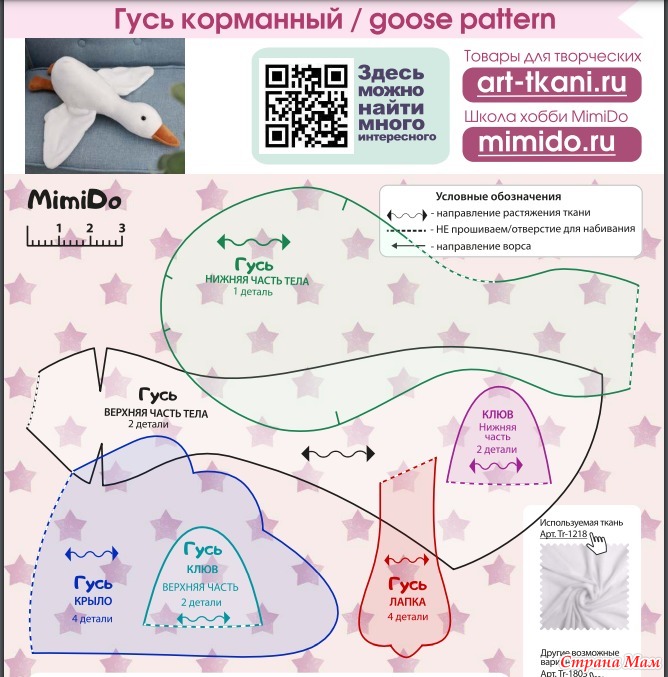 перенести детали выкройки на ткань.. клювик и лапки-ткань соответствующего цвета