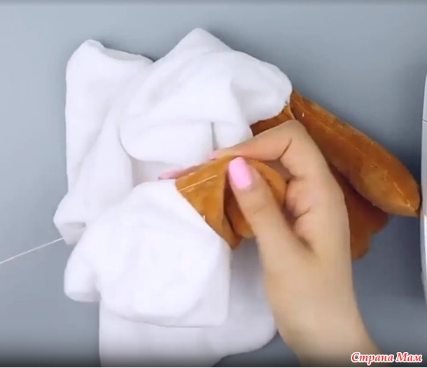 прошить все детали,оставив отверстие для выворачивания в районе шеи