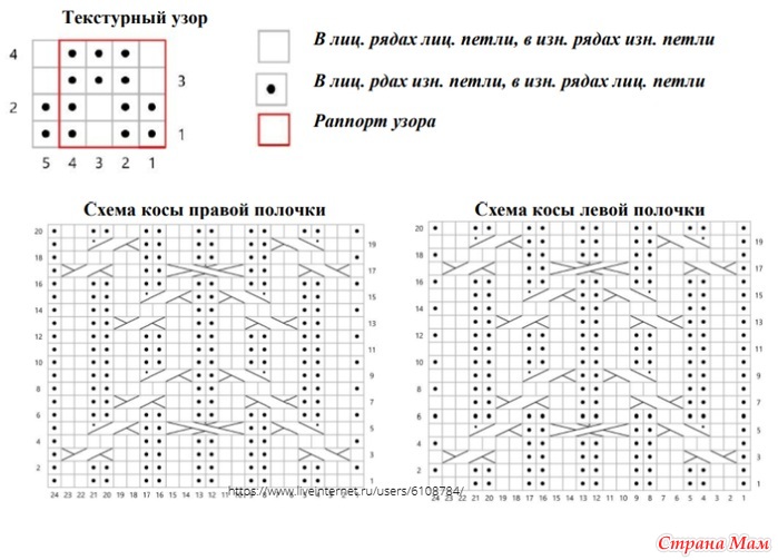 • Косы одинаковы на обеих схемах, за исключением рядов 5 и 17.