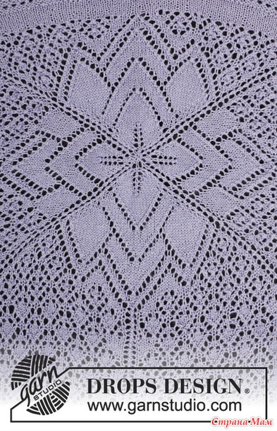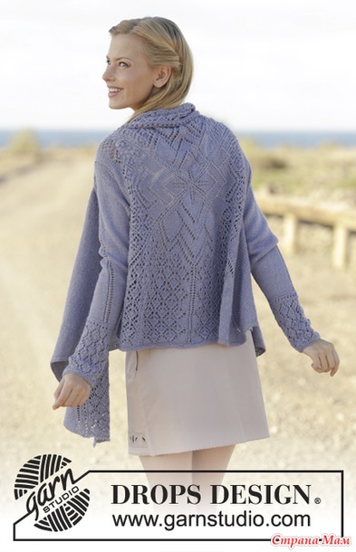Материалы: пряжа DROPS BABYALPACA SILK от Garnstudio 500-550-600-650-700-750 грамм, цвет № 6347, сине-фиолетовый; чулочные и круговые спицы (40, 60 и 80 см) № 3 мм; чулочные и круговые спицы (80 см) № 2.4 мм – для кромок платочной вязкой.