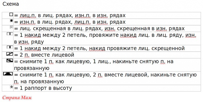 Плотность вязания – 24 п. х 32 р. лицевой гладью = 10 см х 10 см.