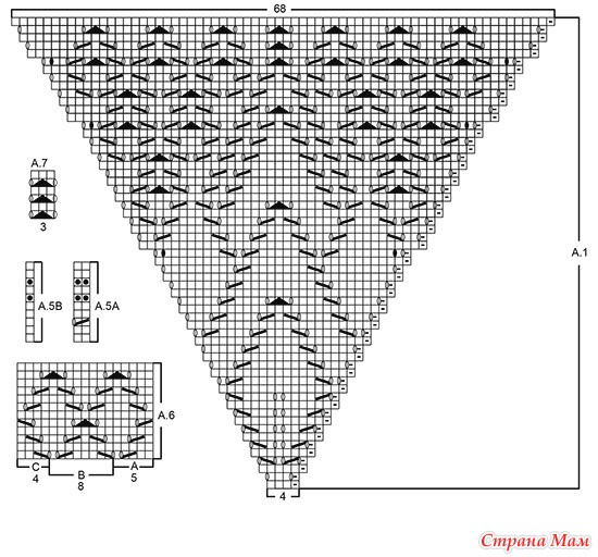 Узор: см. схемы A.1-A.7. На схемах изображены только лицевые ряды.