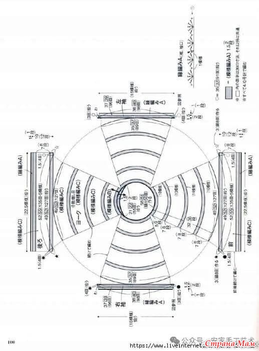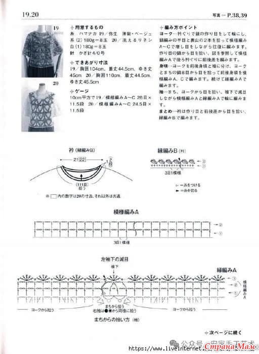 Квадрат 10 см, 19/узор, вязание A~C, 25 дней x 11,5 рядов, 20/узор, вязание A~C, 24,5 дня x