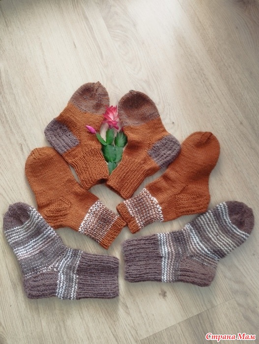 У нас была большая семья ,3 е взрослых и 5 детей и я была старшая ,.Мама не умела вязать пятку и вязание носок на всю семью приходилось мне .И я придумала такой способ вязания носок чтобы не вязать носок заново а убрав подошву связать её заново и не надо штопать и каждый раз носки смотрятся по новому