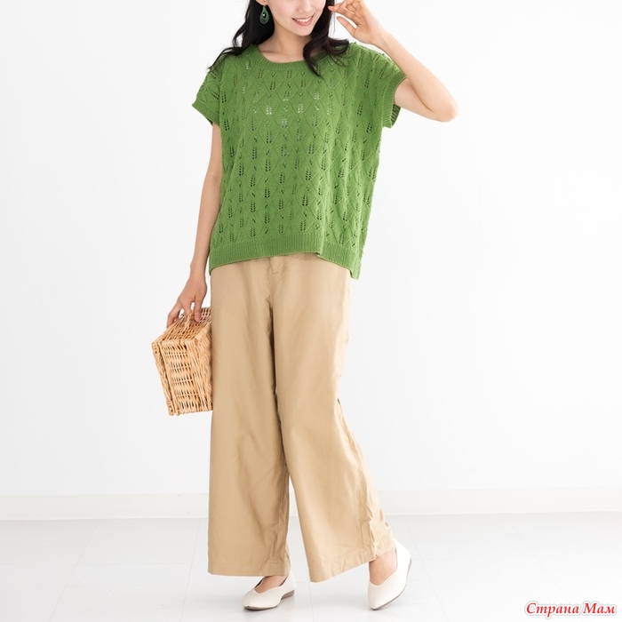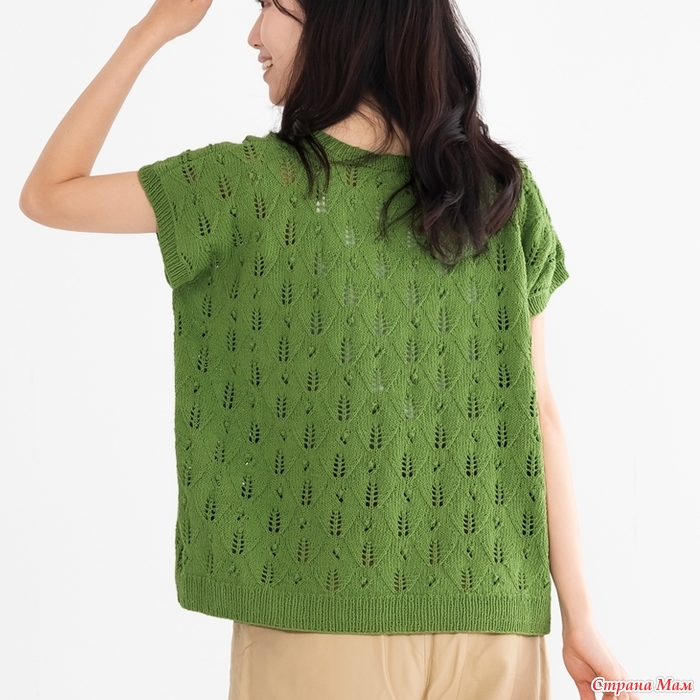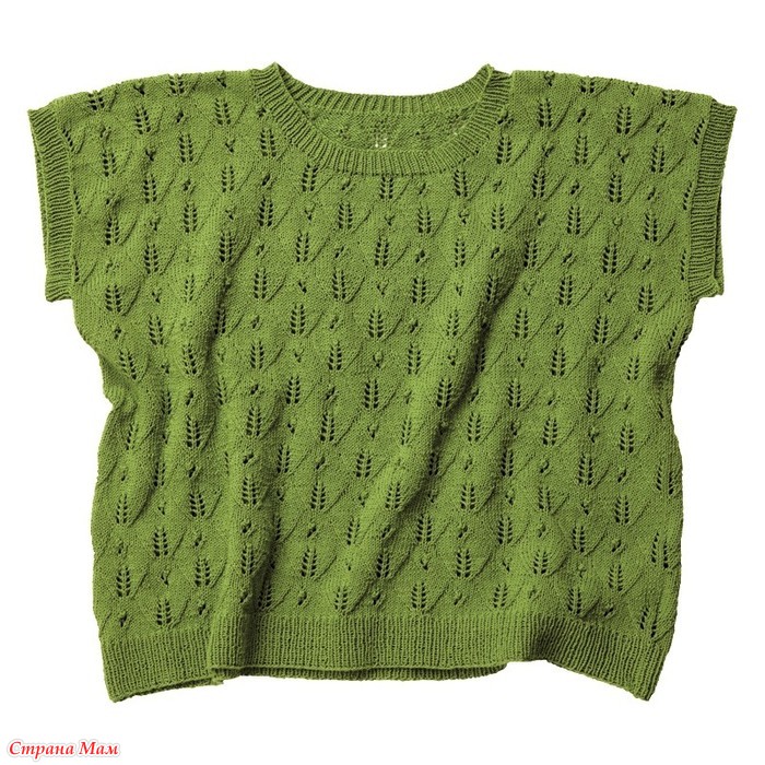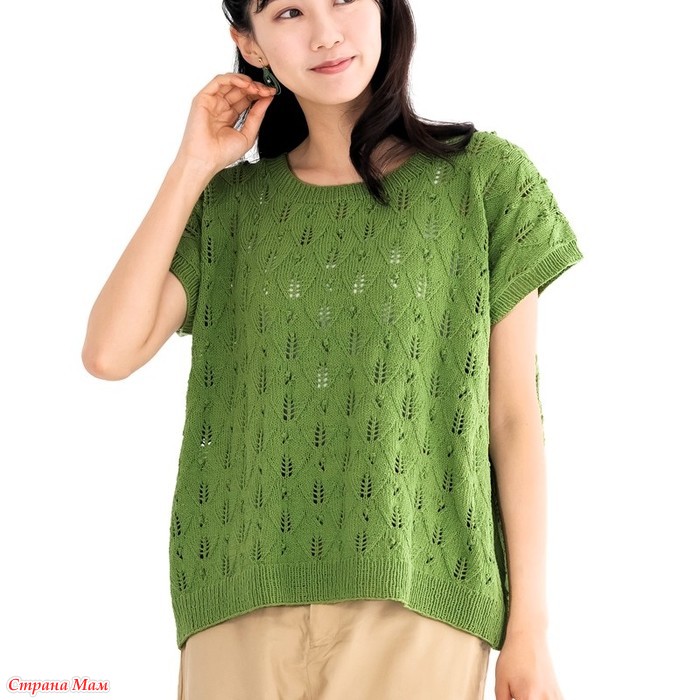 Ажурный топ оверсайз с лиственным узором. Спицы.