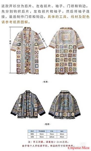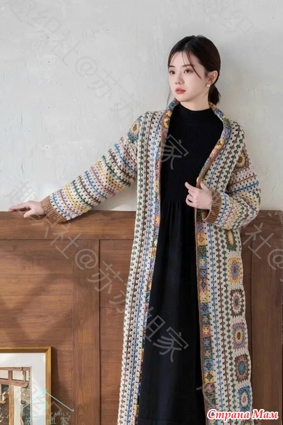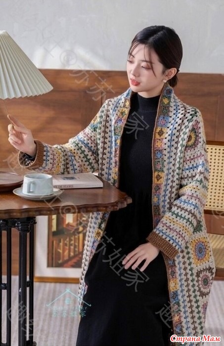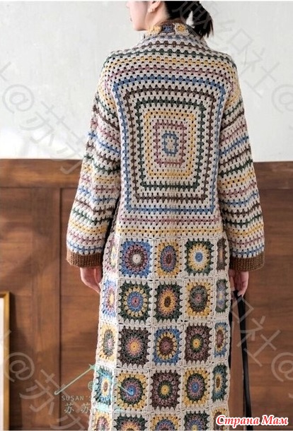Длинное пальто и кардиган обычной длинный с вставками из бабушкиных квадратов. Крючок.