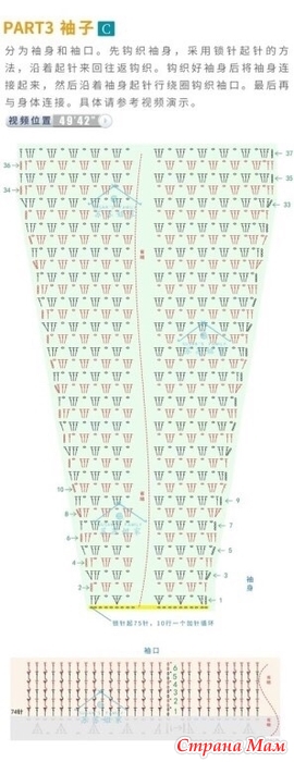 Прикрепите к основной части изделия. Подробности смотрите в видеодемонстрации. Соедините петли, затем обвяжите манжету кругами вдоль начальных петель рукава. Наконец, обвяжите туда-обратно вдоль начальных петель. После того, как рукав связан, соедините основную часть рукава с манжетой. Сначала свяжите основную часть рукава, используя метод начала с воздушной петли.