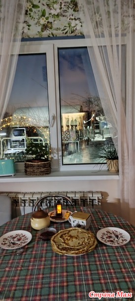 А на светлой кухне бабулька вовсю хозяйничает, накрывая стол: варенье, сыр, масло, самовар и огромная стопка блинов. Дед обязательно сворует один со словами: "Это бракованный"