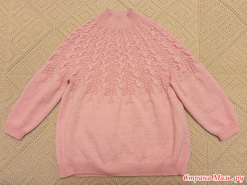 Выбрали с ней модель – джемпер «Загадочные переплетения» Катерины Кутушевой. Купили понравившуюся ей и устроившую меня пряжу, и я начала.