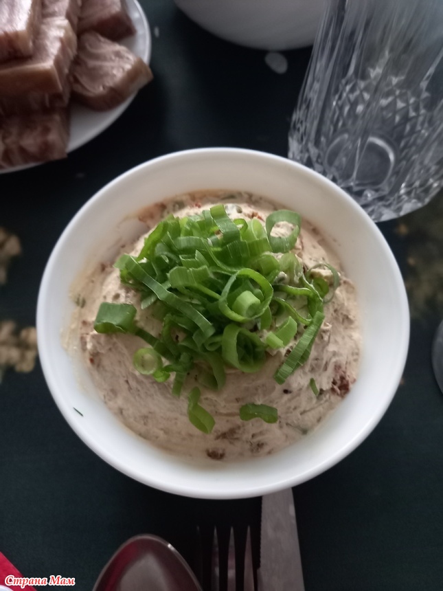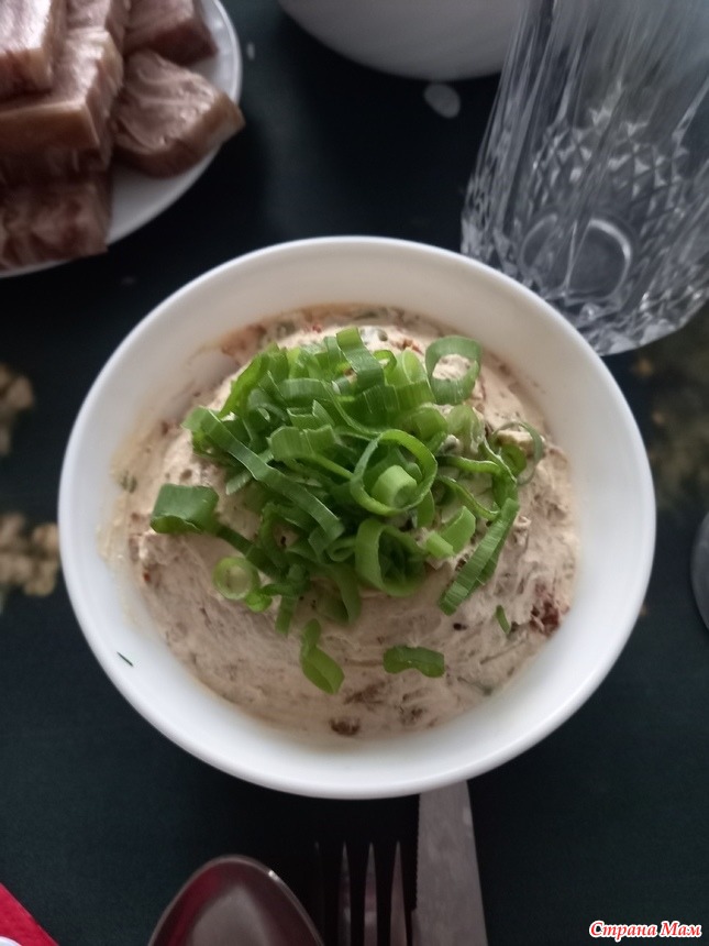 Подавала на круглом крекере намазку из мягкого творожного сыра ( я просто ведерко сметаны перевернула на марлю и утром получился шикарный творожный сыр а ля Маскарпоне. Потом покажу , но недавно Фаина подробно это описывала.