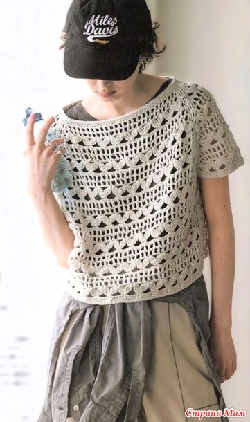 Ажурный топ реглан с узором из листьев. Крючок.