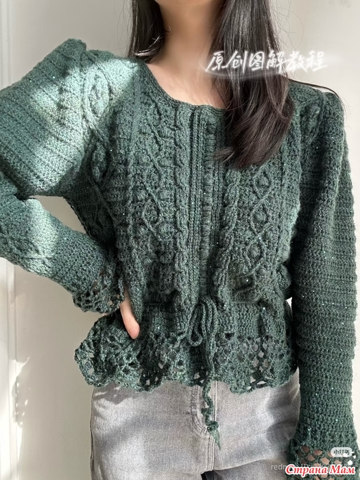 6. Завершите вязание крючком левого и правого рукавов.