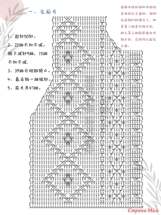 Количество рядов одинаковое, симметрично только количество набранных петель и узор цветка с количеством набранных петель на левой передней части изделия.