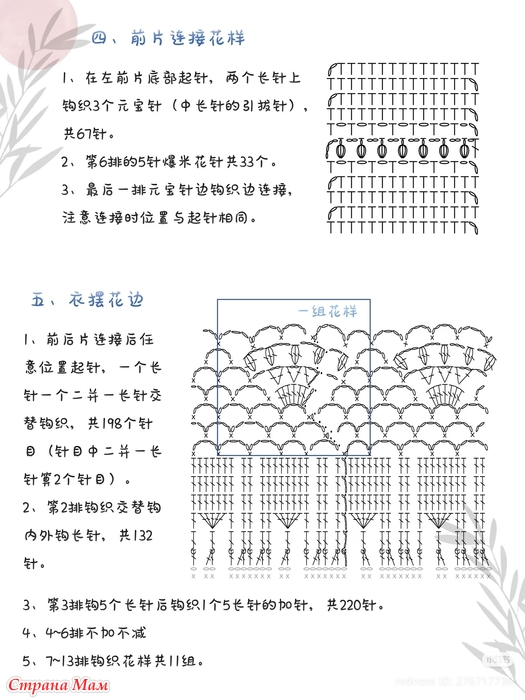 Ряды с 6, 7 по 13 связаны крючком с использованием узоров, всего 3 набора узоров.