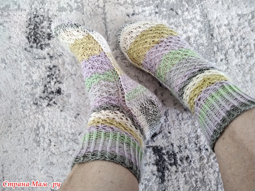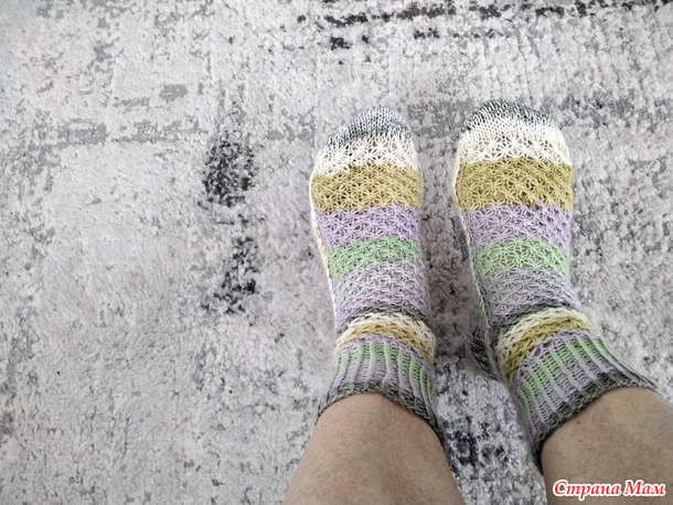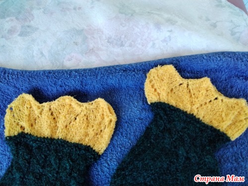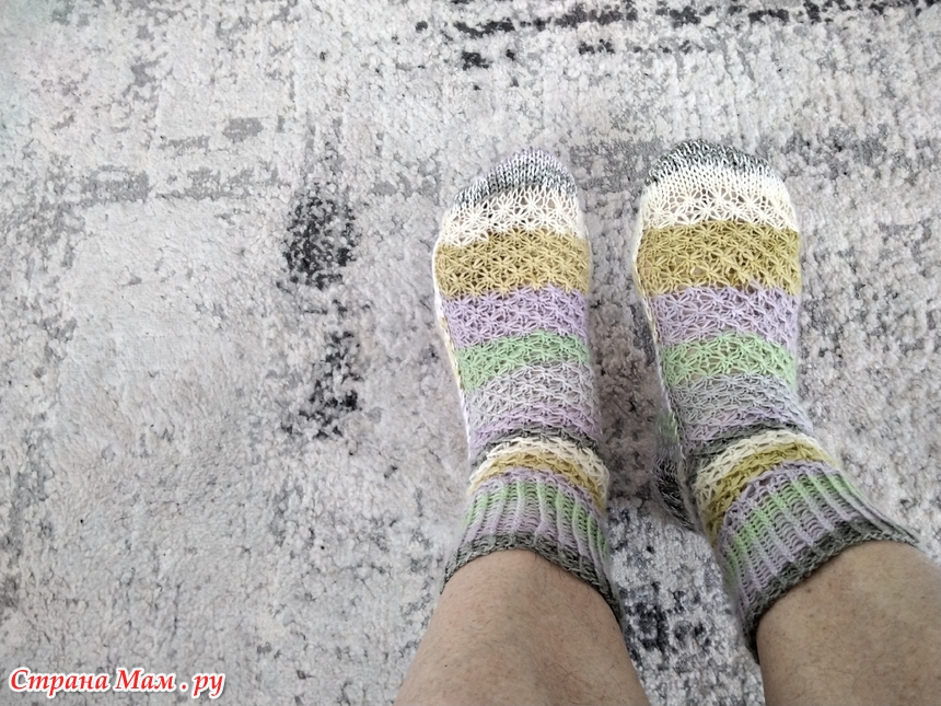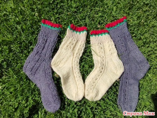 У меня, прям, носочный сезон - сыну связала 2 пары, мужу одну, двум племянницам и куме по паре и себе - это уже третьи. Перед ними вязала носочки с рюшем, сейчас сделаю фото и покажу, вдруг и вам понравятся