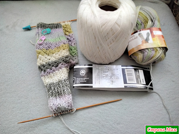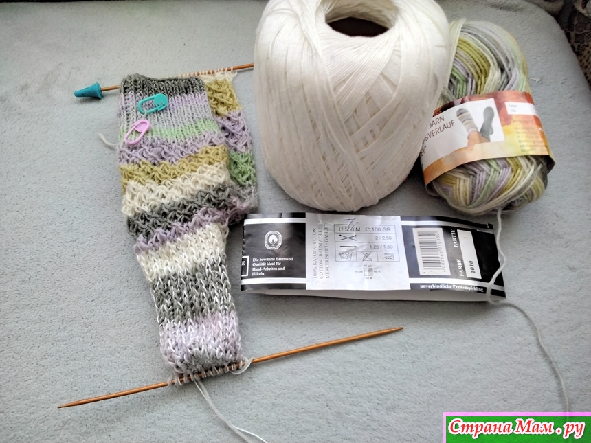 Пяточку вяжу укреплённую с добавкой хлопчатобумажную нить в 100 но 550 метр.