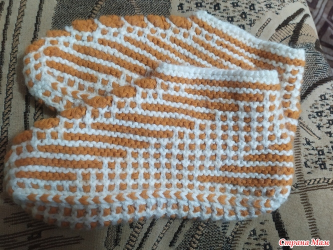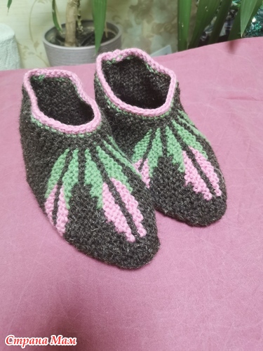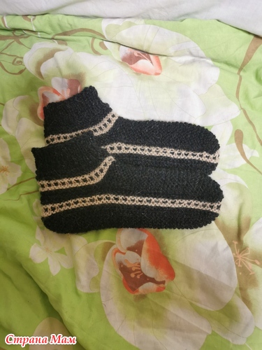 А потом муж начал жаловаться так я ему одни связала а 2 к отремонтировала заново связала подошву