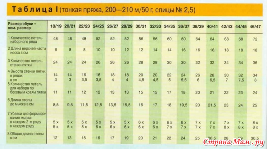 Я разделила свои петельки так , для верхней части я взяла 27 петель а на пятку и подошву оставила 25 петель.