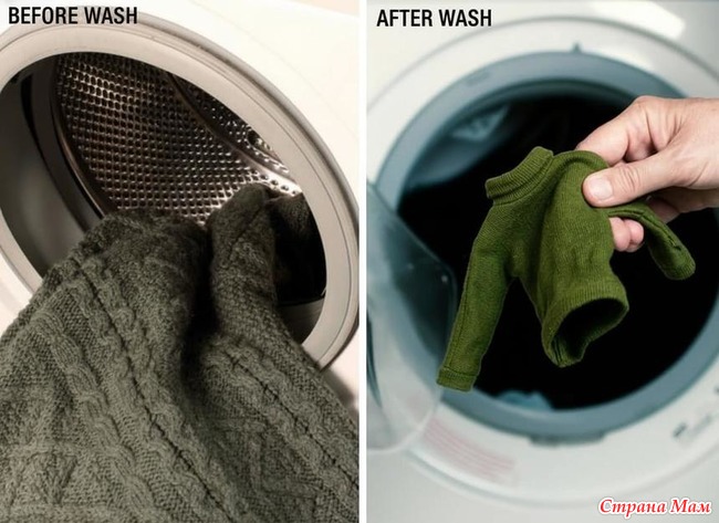 То, что вязаные вещи при стирке в горячей воде могут значительно сесть, я знала. Особенно, если натуральная пряжа. И даже здесь, в СМ, мы обсуждали, нисколько реально реанимировать такую вещь