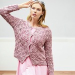 Для вязания нам понадобится 500 (600) 700 г пастельно-розовой меланжевой пряжи: 100% шёлк; 165 м/50 г. Спицы № 5 и круговые спицы № 5. А также 5 пуговиц диаметром 16 мм.