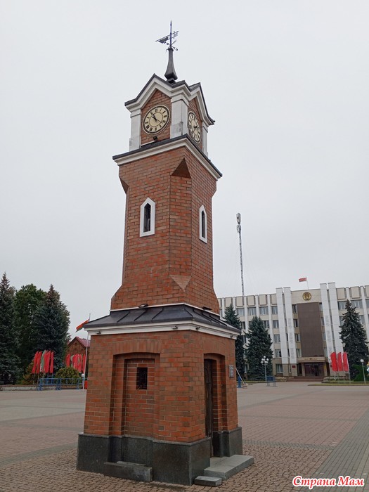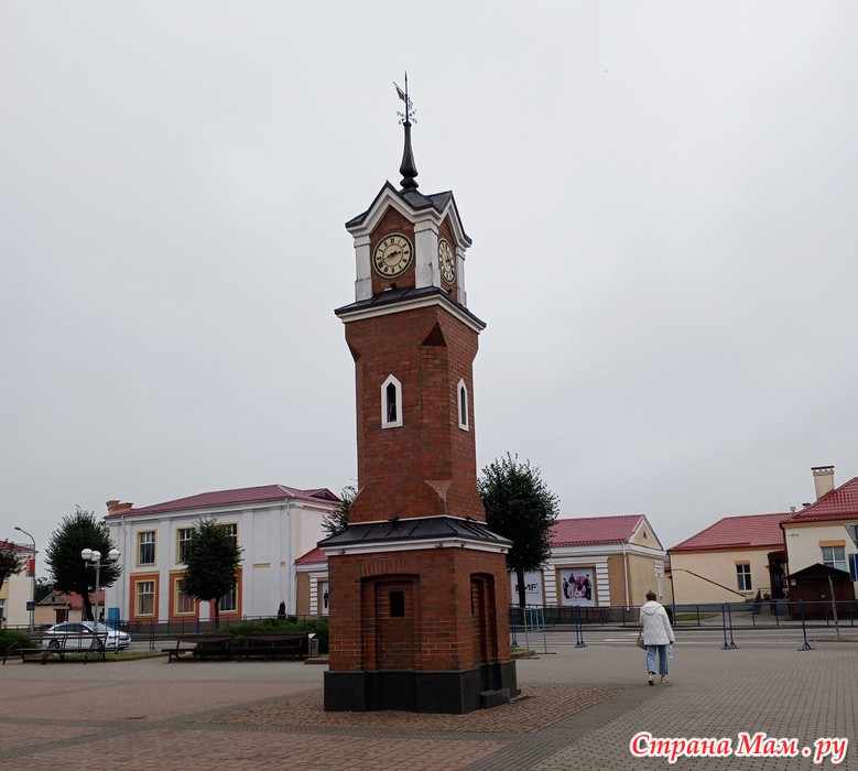 Правда, в центре площади есть такое интересное сооружение - башня с часами. В начале ХХ века на центральной площади Щучина была построена кирпичная часовня в виде башни. Она призвана была защитить город, который в те времена был преимущественно деревянным, от пожаров, а также других стихийных бедствий.Со временем постройка обветшала, и в 1960-х годах ее снесли. В 2007 году была возведена новая башня, которую местные жители прозвали «Биг-Беном». Каждые полчаса куранты на башне отбивают точное время.
