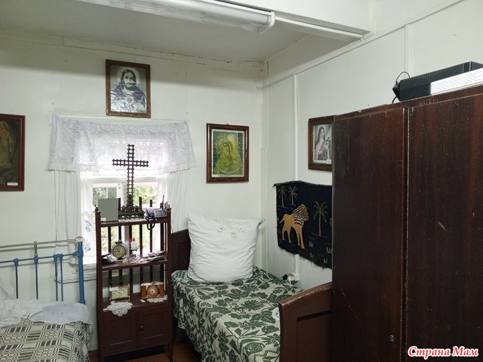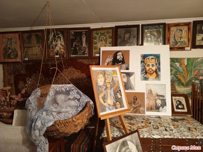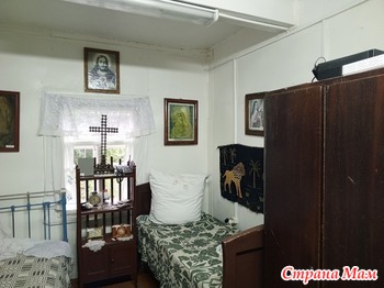 Там над кроватью висит "маляванка", у моей бабушки была с лебедями одна, а вторая с розами.