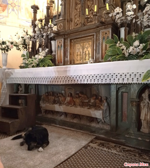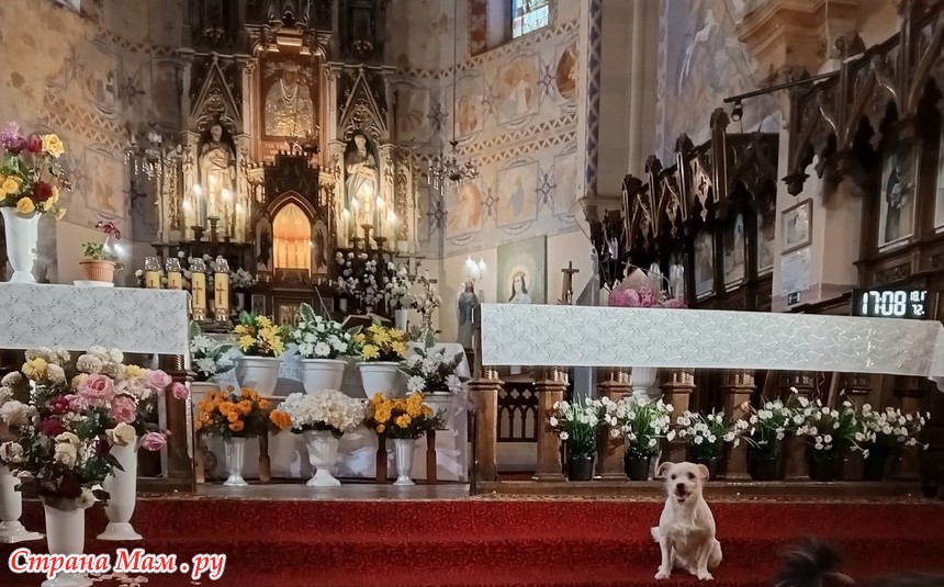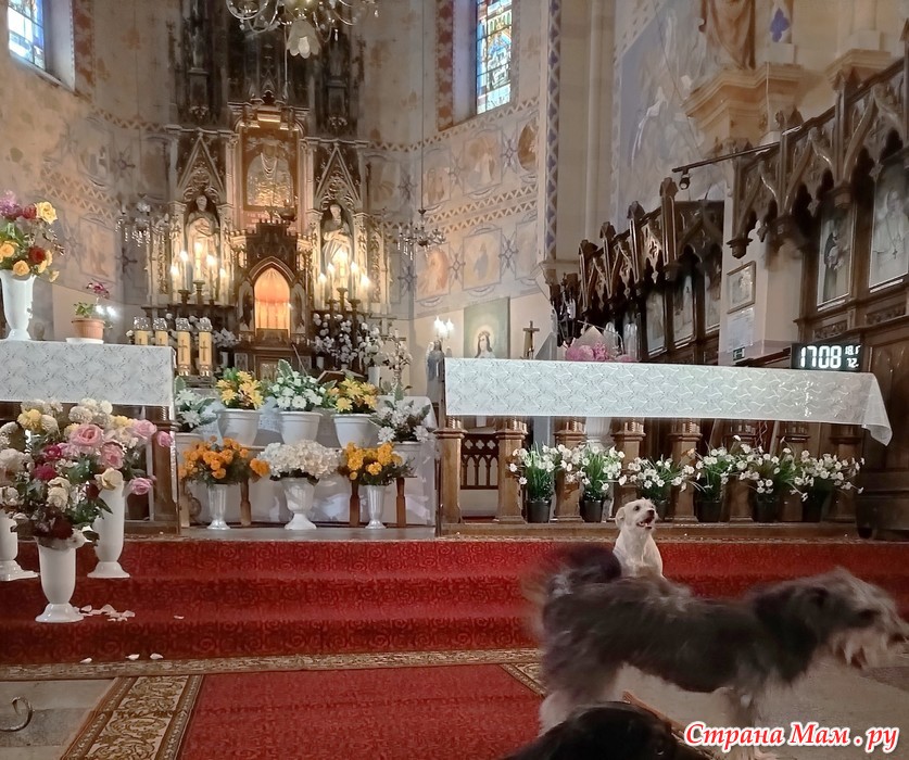 Настоятель, любитель собак, разрешает им находиться в храме.