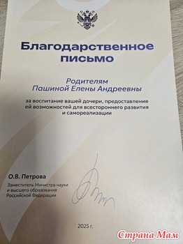 После награждении Правительства РФ я всё-таки "полопалась". Там вручили грамоты родителям стипендиатов.