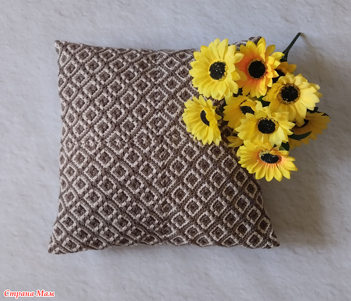 Пряжа и крючок те же, использовала покупную внутреннюю подушку размером 50х50 см.