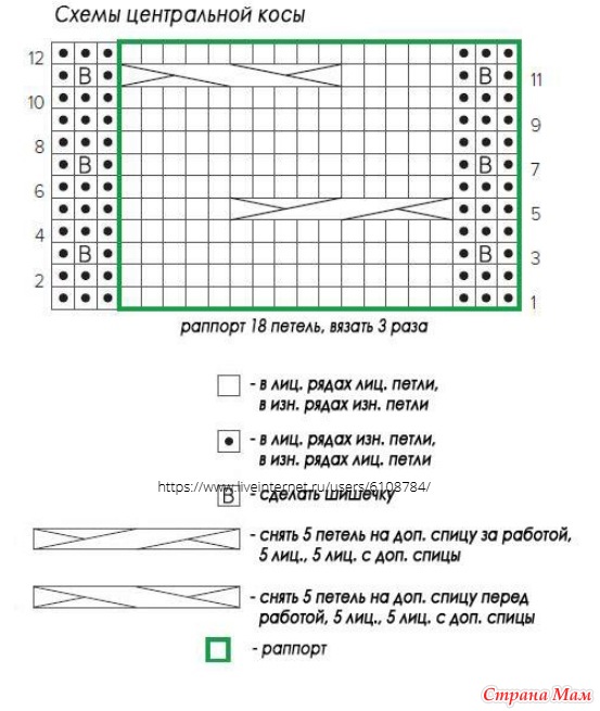 Примечание: вязать раппорт из 18 петель схемы 3 раза.