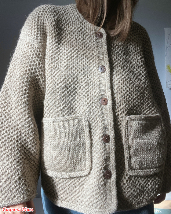 Пряжа: 800 (850, 900, 950, 1000) 1050, 1100, 1200 г Järbo Svensk Ull (100 г = 180 м) ..или пряжа, которая даст ту же плотность!; 5 пуговок (22-25 мм)