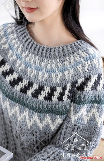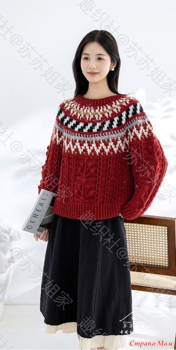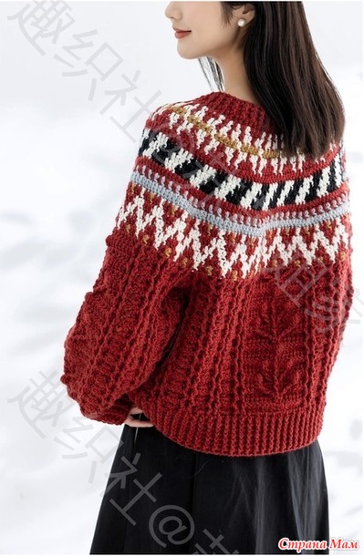 Плотный джемпер с круглой жаккардовой кокеткой.