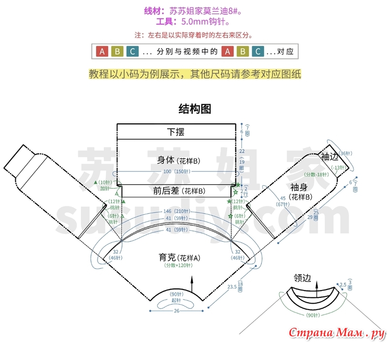 В этом руководстве в качестве примера используется маленький размер; для других размеров, пожалуйста, обратитесь к соответствующей выкройке.