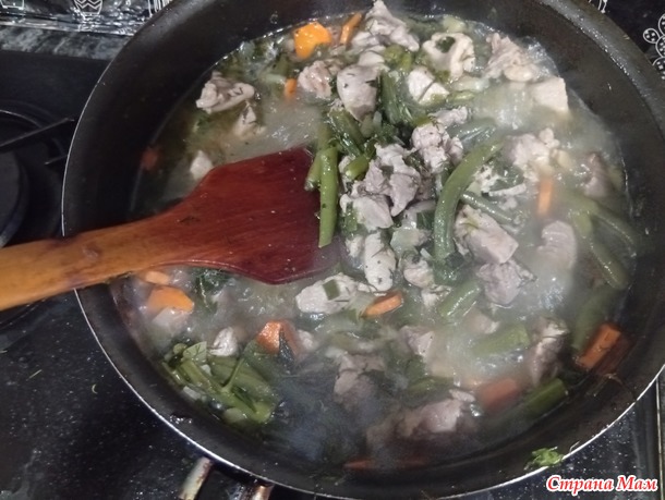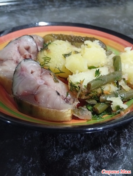 Я приготовила картошечку с о стручковой фасолью. Дополнила ее скумбрией