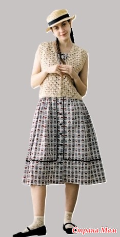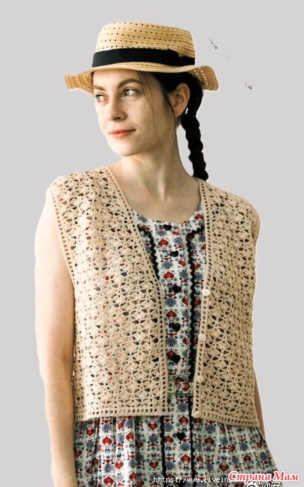 Короткий ажурный жилет на пуговицах. Крючок.