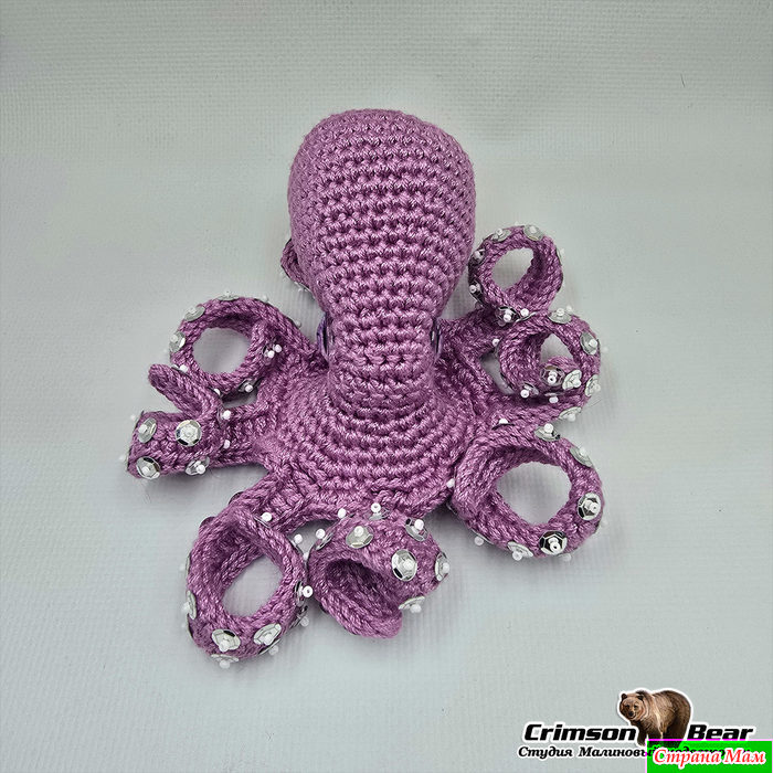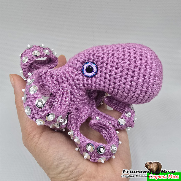Блестящий осьминог, украшенный пайетками может стать подвесом на сумку, в машину или украсит интерьер дома.