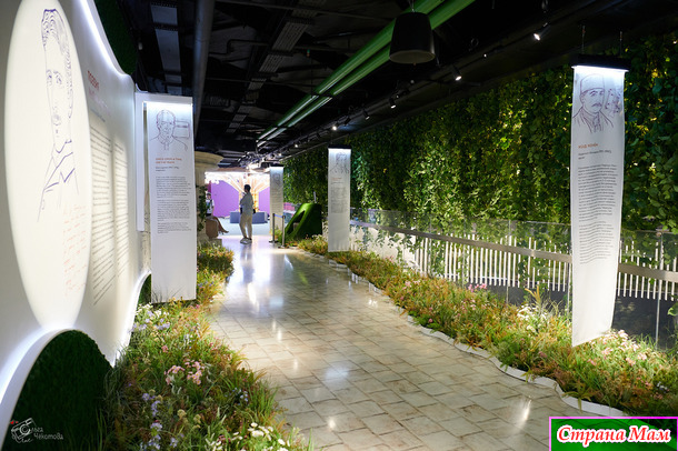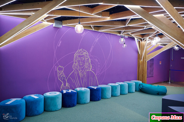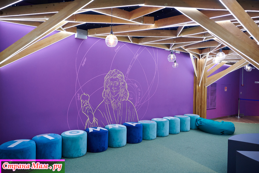 Пока отдыхаешь, взгляд скользит по стенам, где проецируются цитаты великих ученых — Курчатова, Капицы, Эйнштейна, Фейнмана. Это не сухие выдержки из учебников, а живые, почти личные мысли о том, как рождается открытие, что такое вдохновение и в чем красота науки.