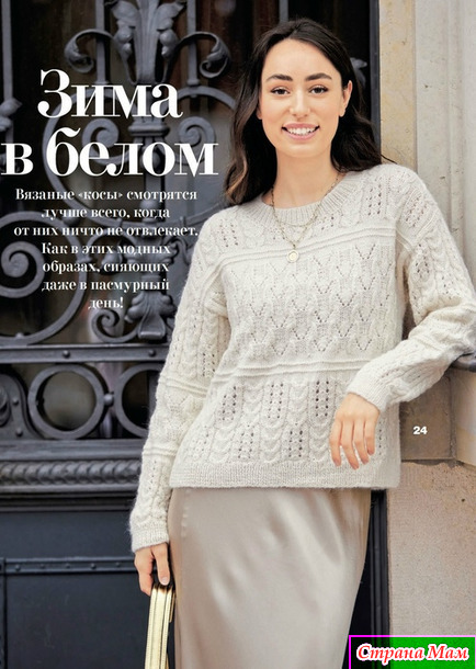 попала на просторах интернета вот такая вязаная модель. В названии хоть и написано, что зима, но, думаю, будет актуально в любое время года.