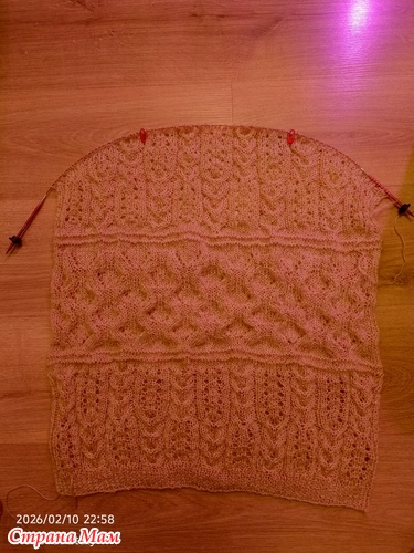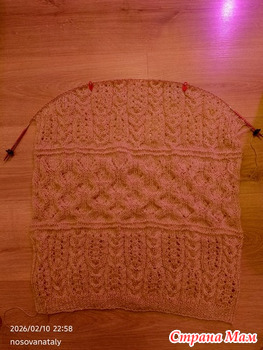 Ошибка в количестве петель рукава. Пересчитывала сама. Еще не поняла скаральный смысл вязания узора на рукаве. В количество петель идеально вписывается три раппорта узора.