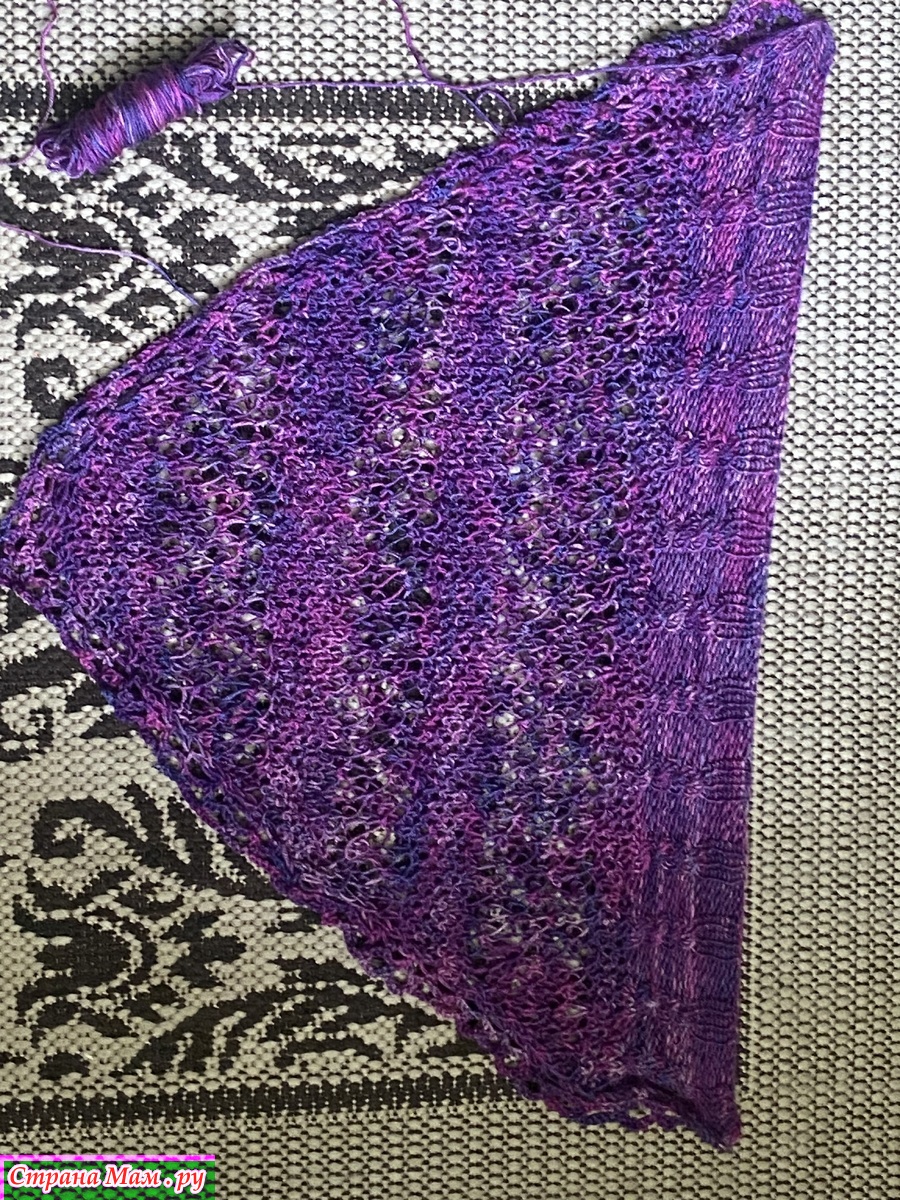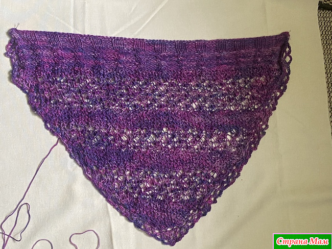 Косынка связана спицами и слегка обвязана крючком.