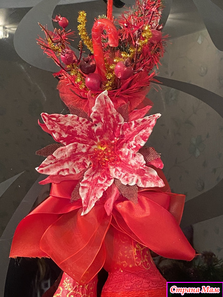 Решила еще показать тут. Это для «Радуги». Нужно было в красном цвете. И вот нашлись подходящие по форме пластиковые бутылки. Ну, а дальше сплошная безудержная фантазия