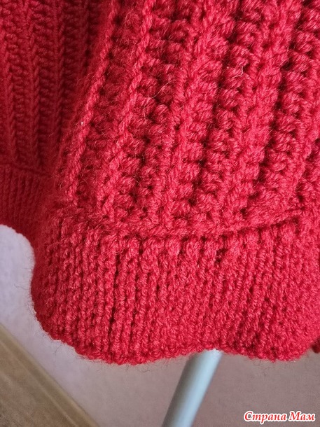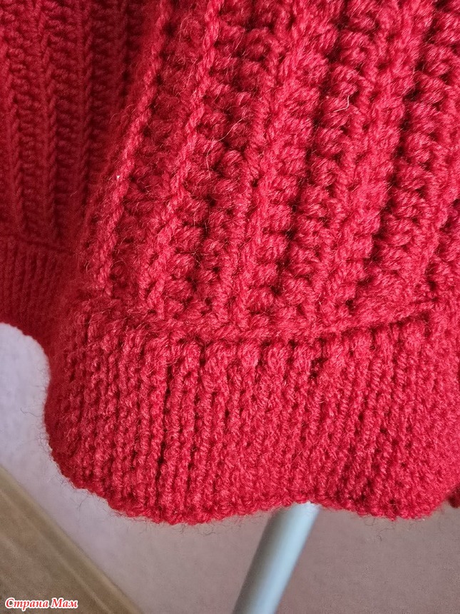 Резинка по низу и рукавам, соединительные столбики, 10 петель