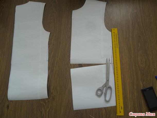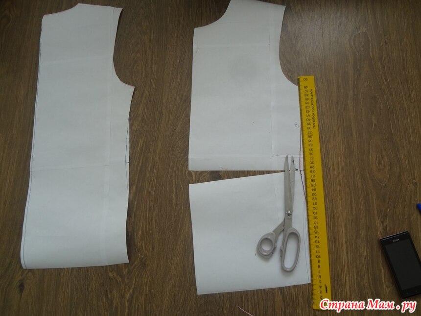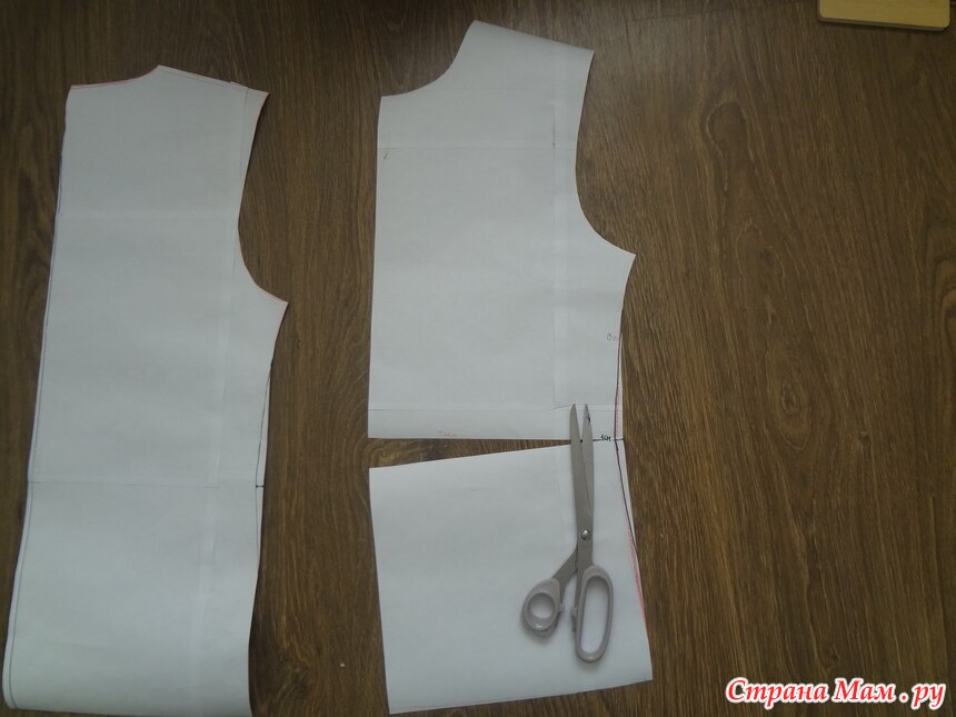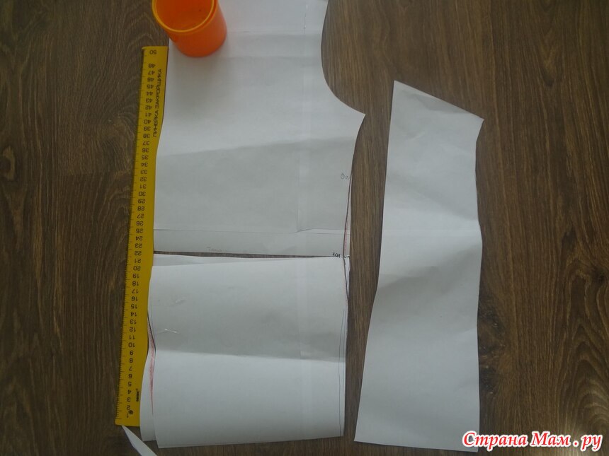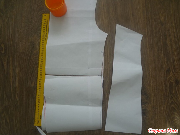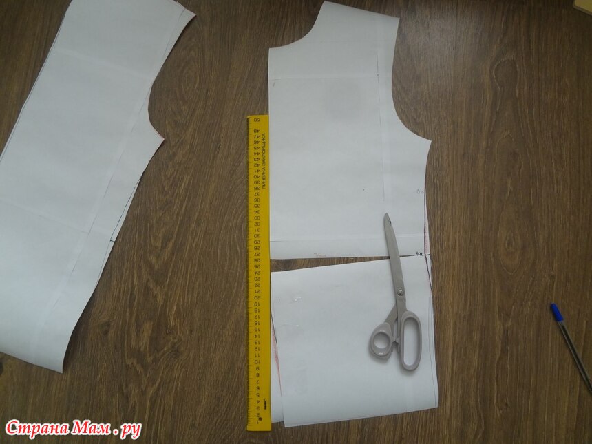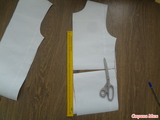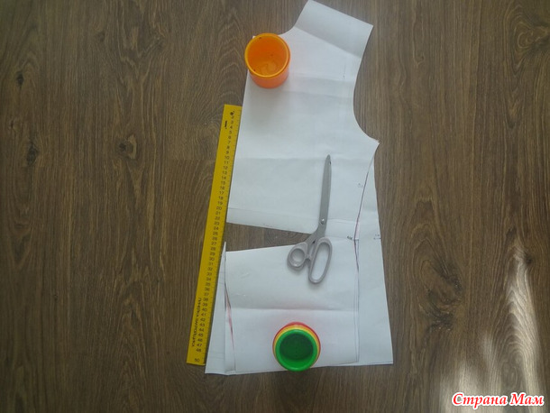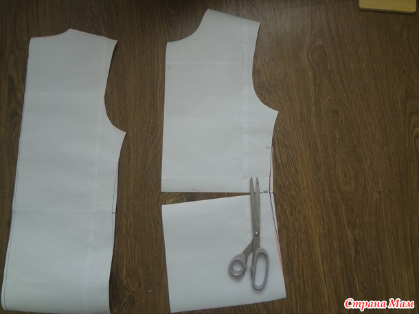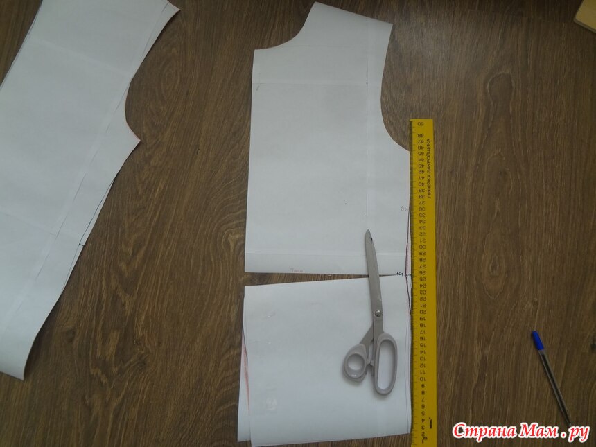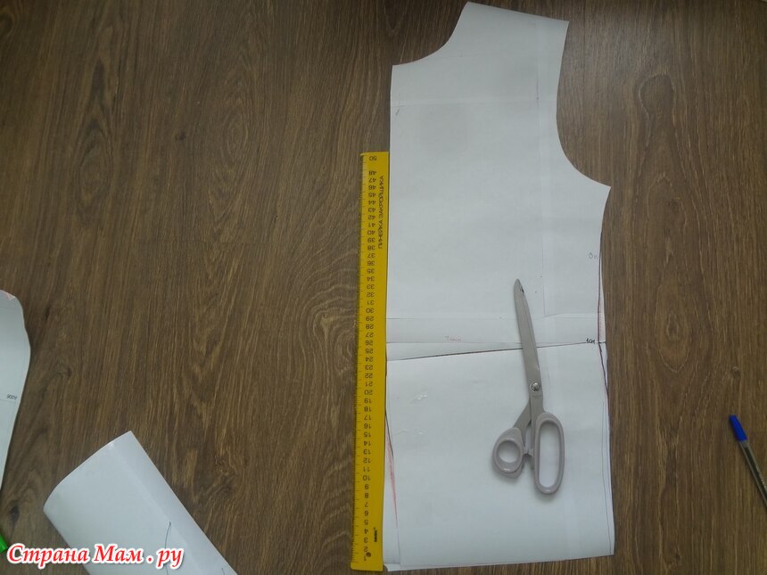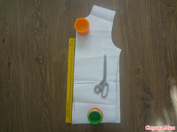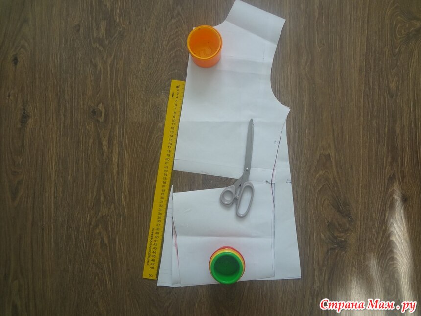 Ровняем по нижней точке проймы и выдвигаем этот кусочек бумаги на 1 см (КР/2).