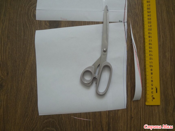 Отмечаем линию талии на выкройке и режем не доходя до конца 1 мм.