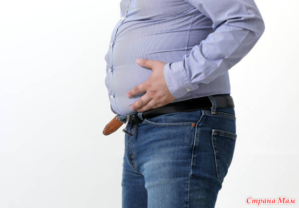Смотрим на мужчину сбоку и оцениваем разницу между грудью и животом (на фото 1 красный отрезок).