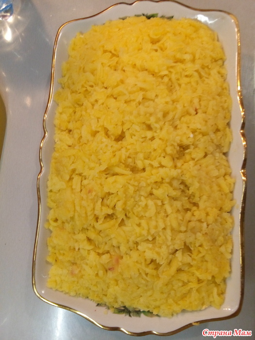 Тоже всегда натираю овощи на терке (как-то у кого-то пробовала кубиком - вообще не понравилось), но картофель уже лет 20 кладу вниз, на него селёдку, лук и масло. Не помню уже, кто посоветовал, я попробовала и мне понравилось.