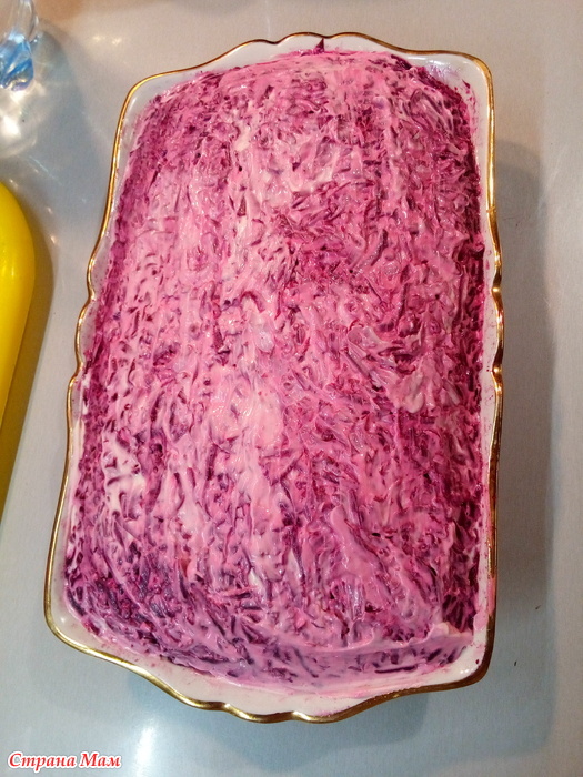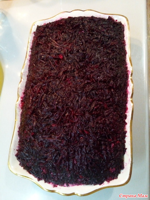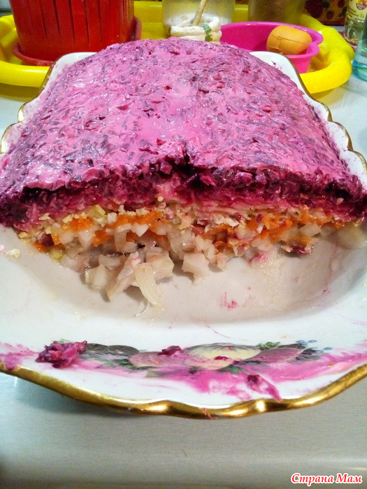 Селёдку стали покупать Матиас, она нам больше нравится. Читала, что некоторые не селёдку кладут, а другую солёную рыбу (форель, кету, лосось), но нам и с селёдкой вкусно, а красную рыбу мы и без "шубы" съедим.